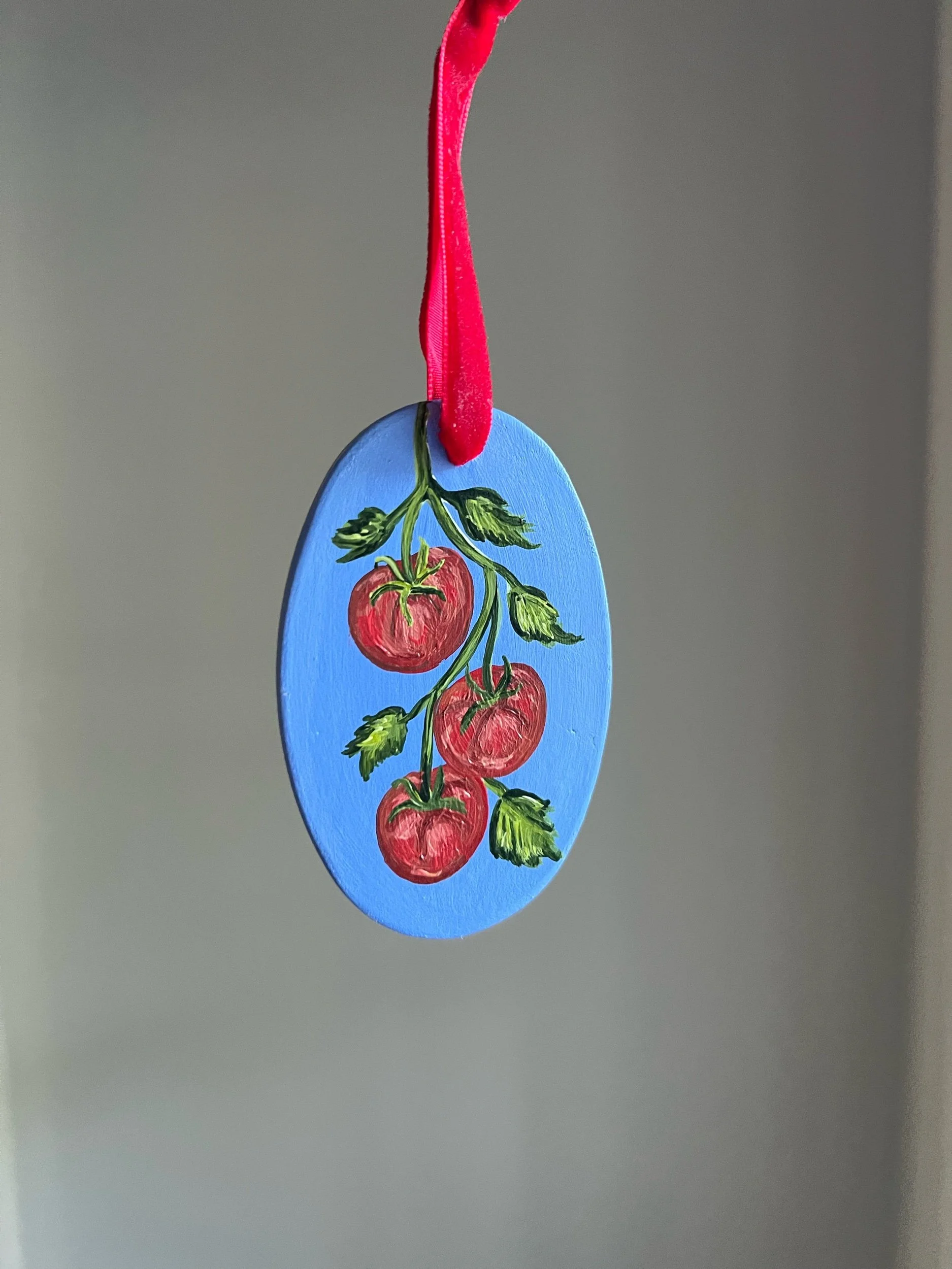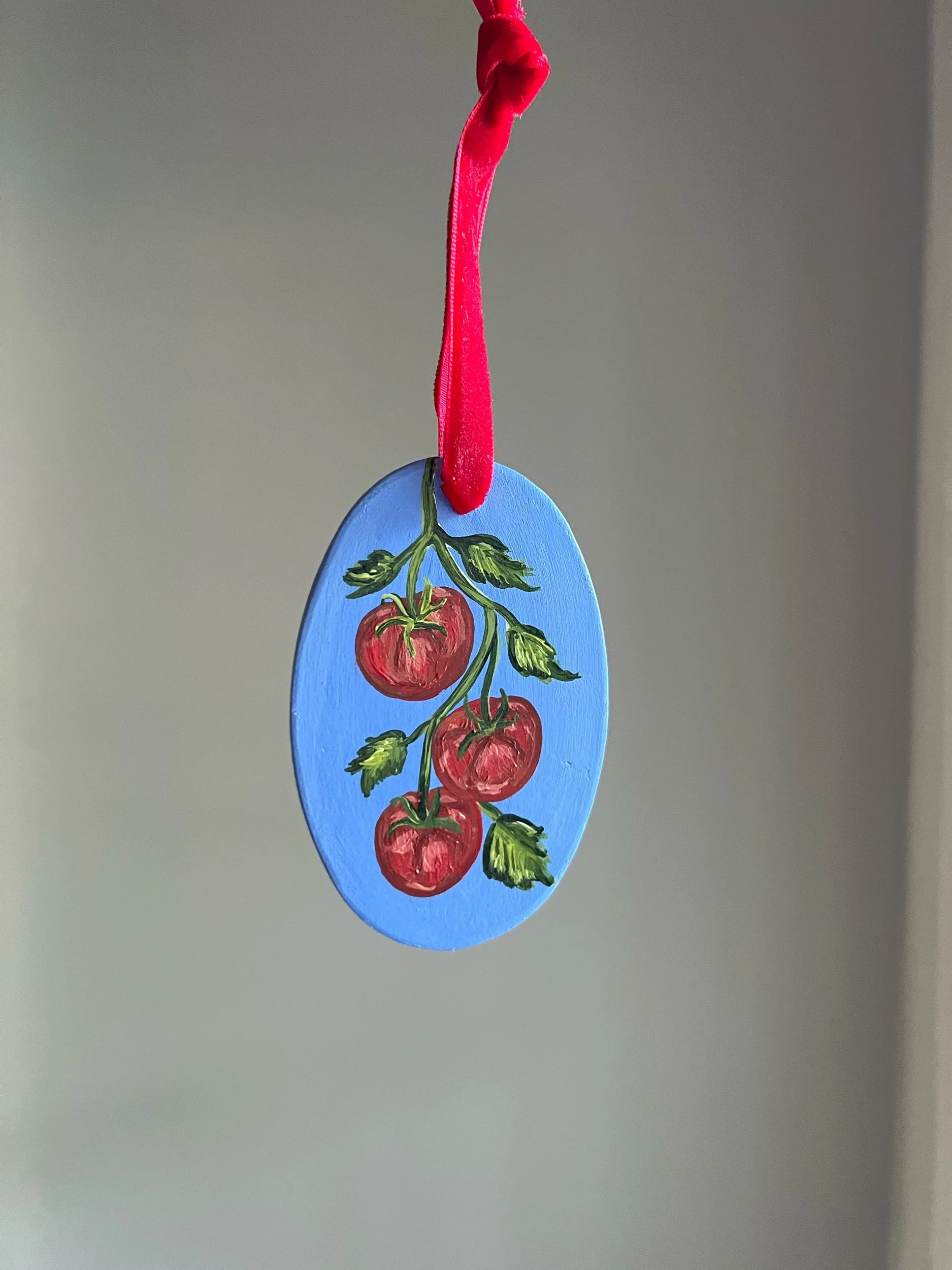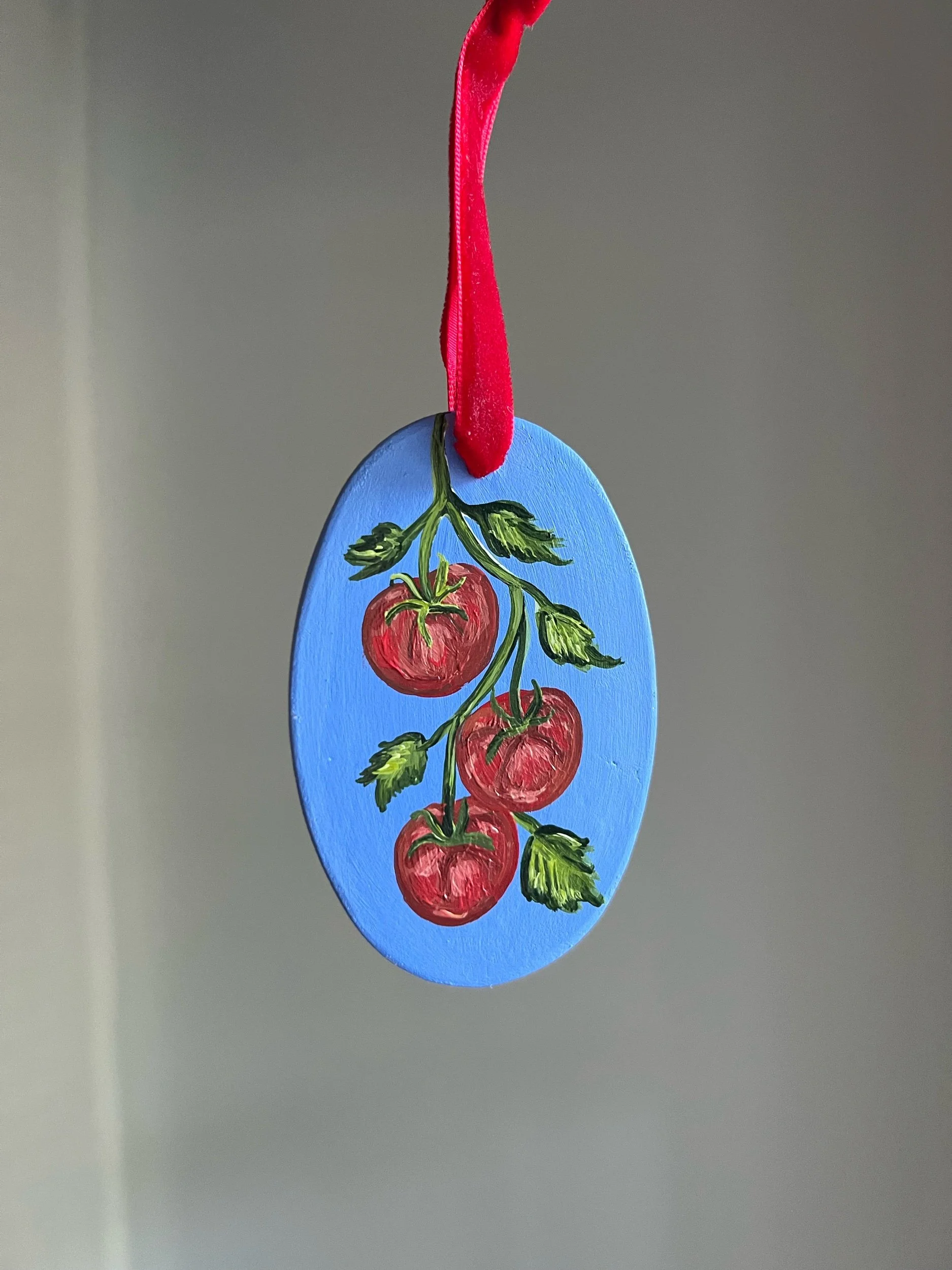 Image 1 of 3 Image 2 of 3 Image 3 of 3 Tomato vine ornament $42.00 Hand made bisque ornamentHand paintedVelvet ribbon Purchase Added! Hand made bisque ornamentHand paintedVelvet ribbon