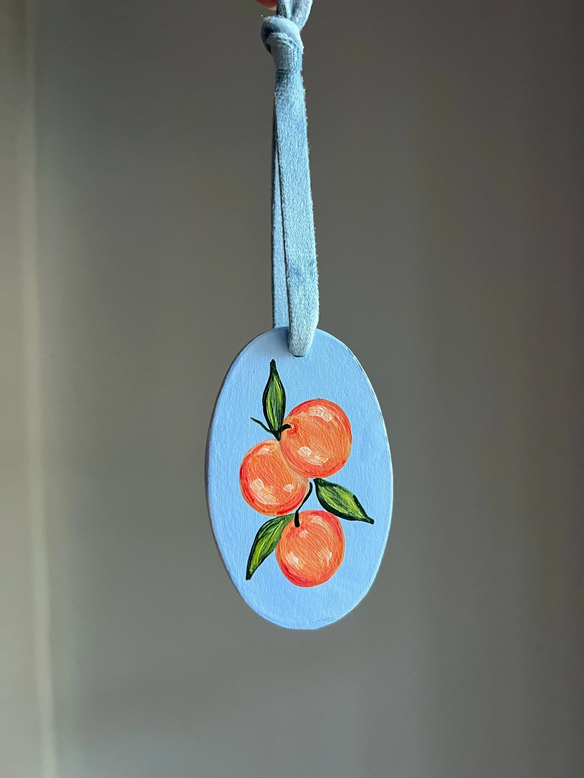 Image 1 of 2 Image 2 of 2 Orange branch ornament $42.00 sold out Hand made bisque ornamentHand paintedVelvet ribbon Sold Out Added! Hand made bisque ornamentHand paintedVelvet ribbon
