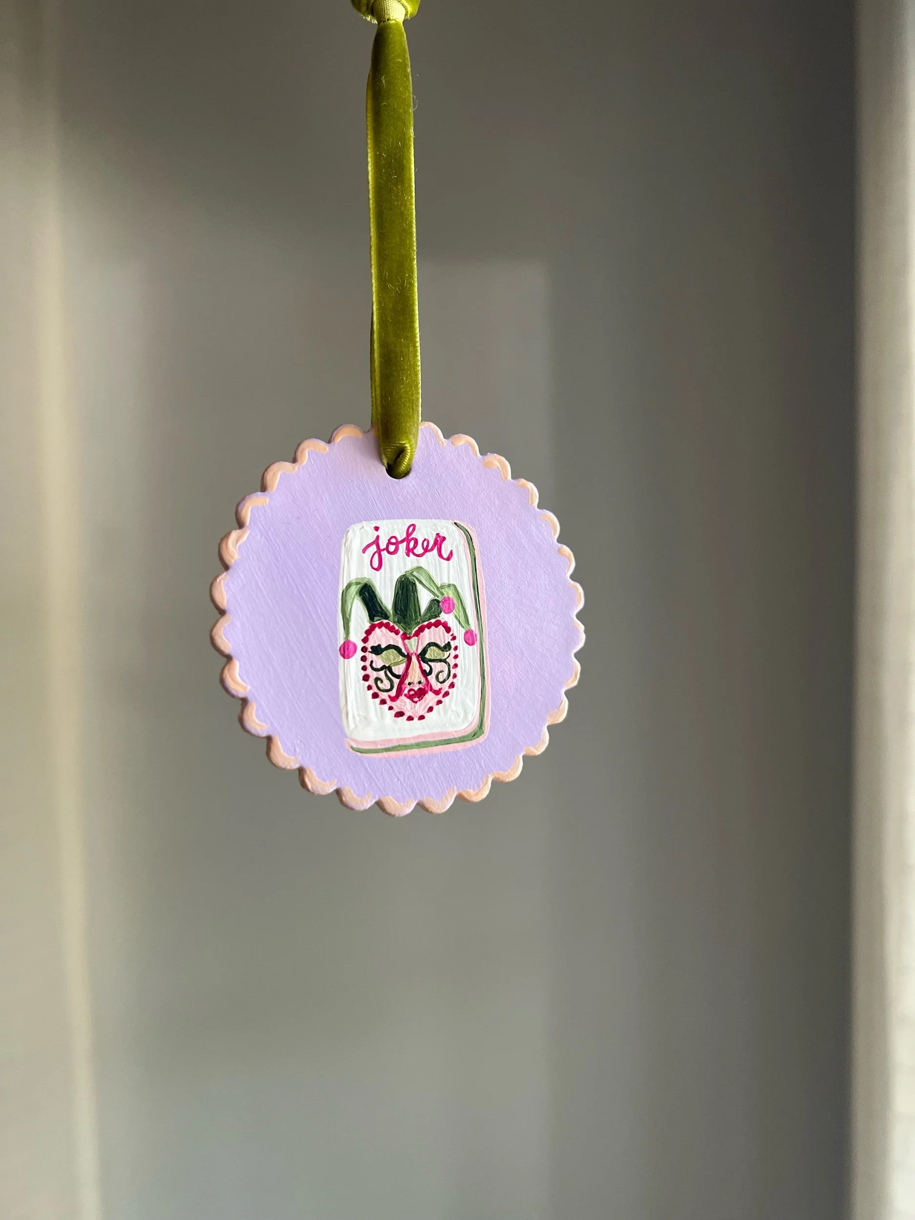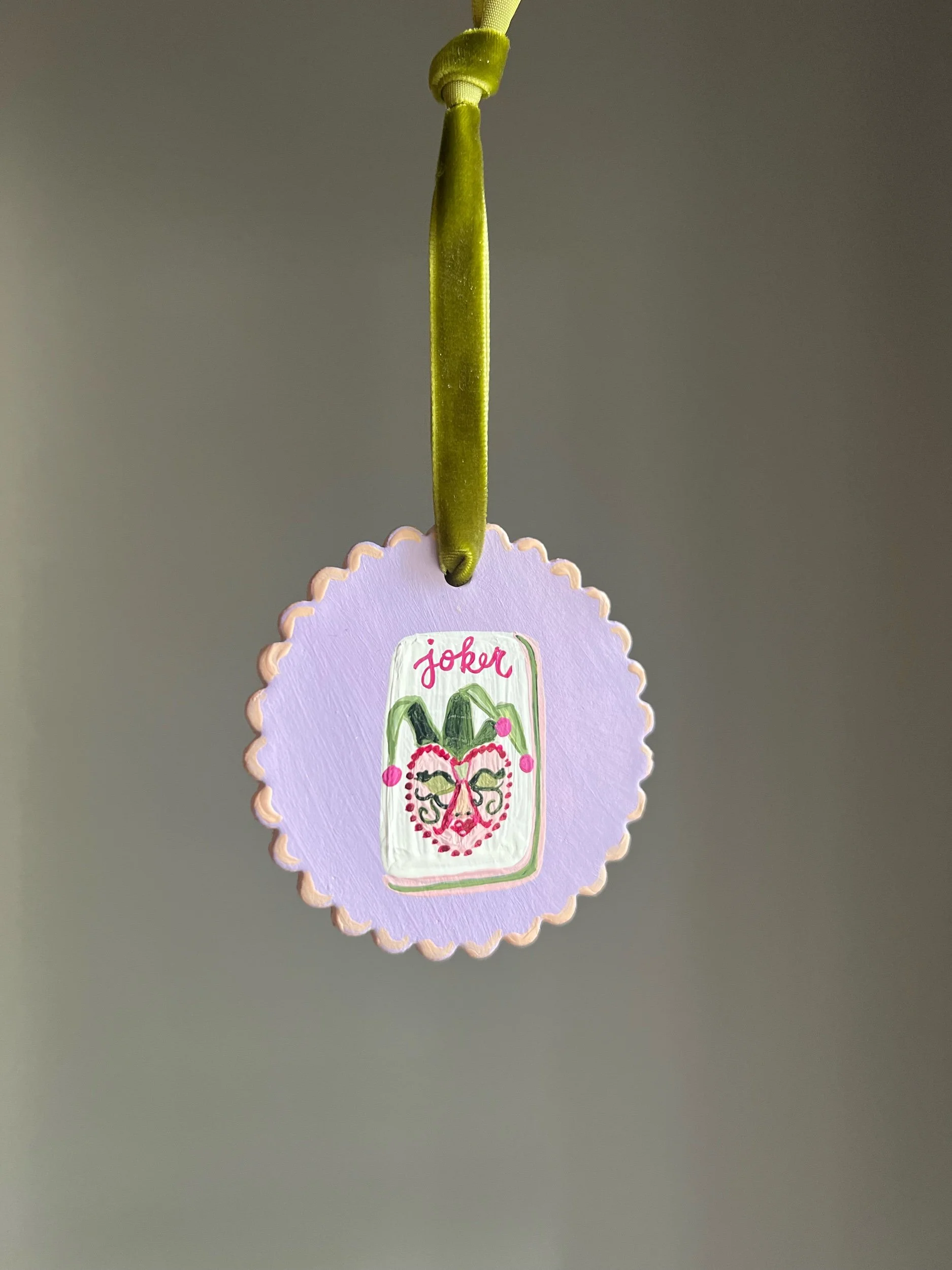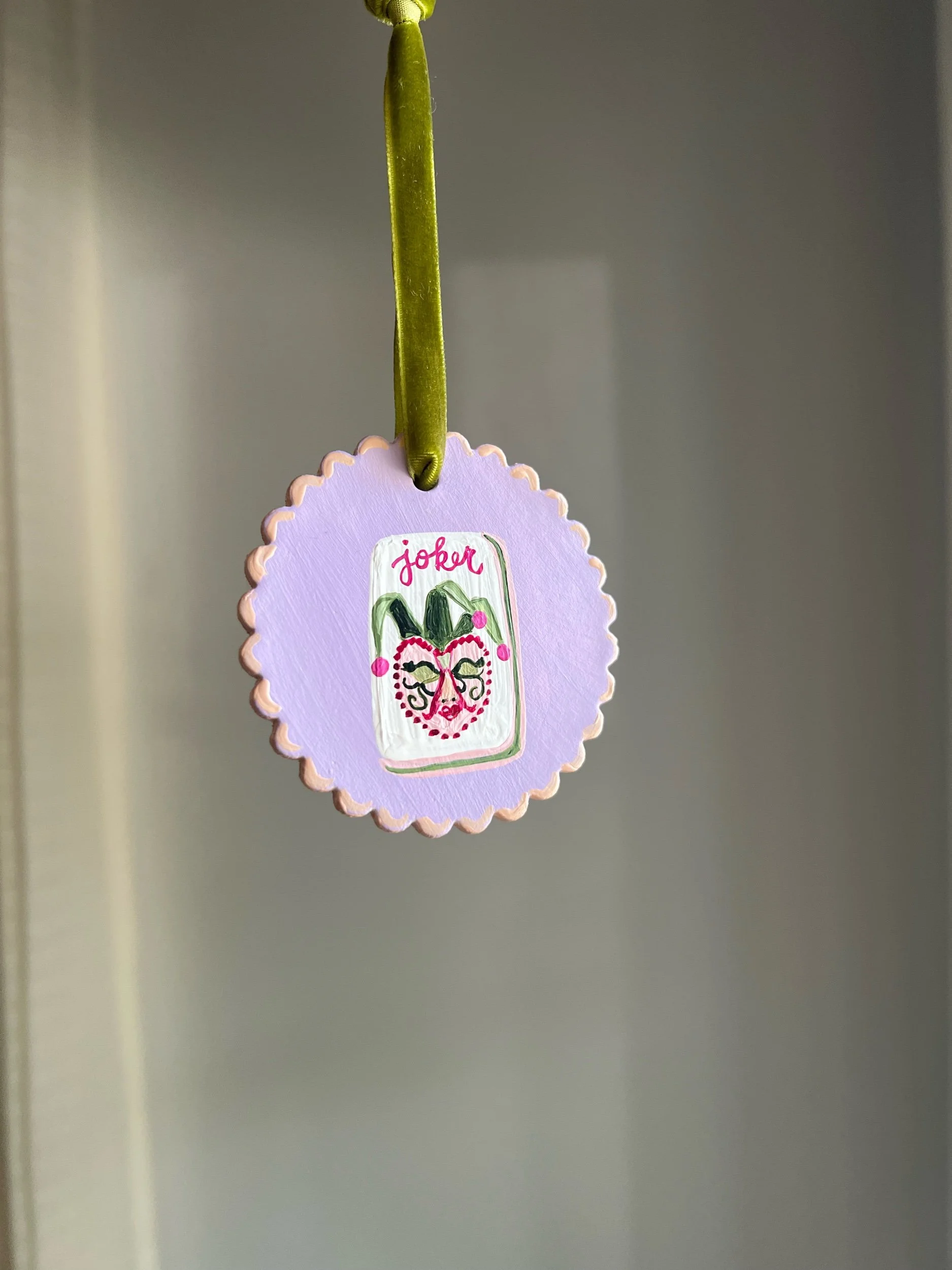 Image 1 of 3 Image 2 of 3 Image 3 of 3 Mahjong Joker Tile Ornament $42.00 Hand made bisque ornamentHand paintedVelvet ribbon Purchase Added! Hand made bisque ornamentHand paintedVelvet ribbon