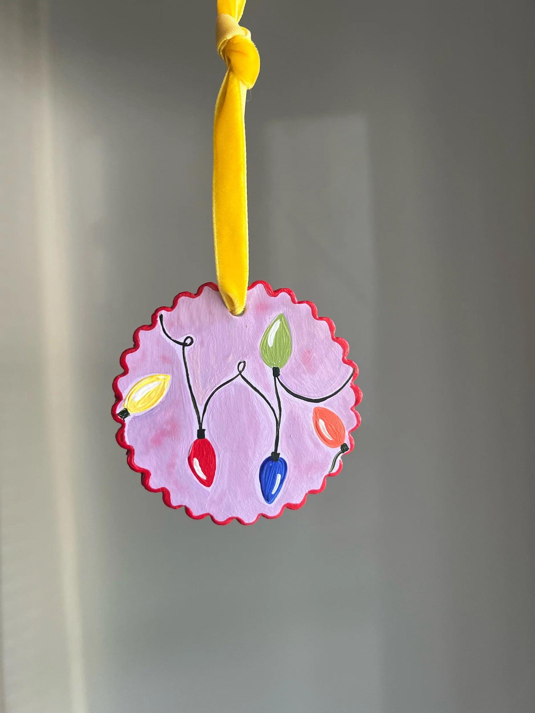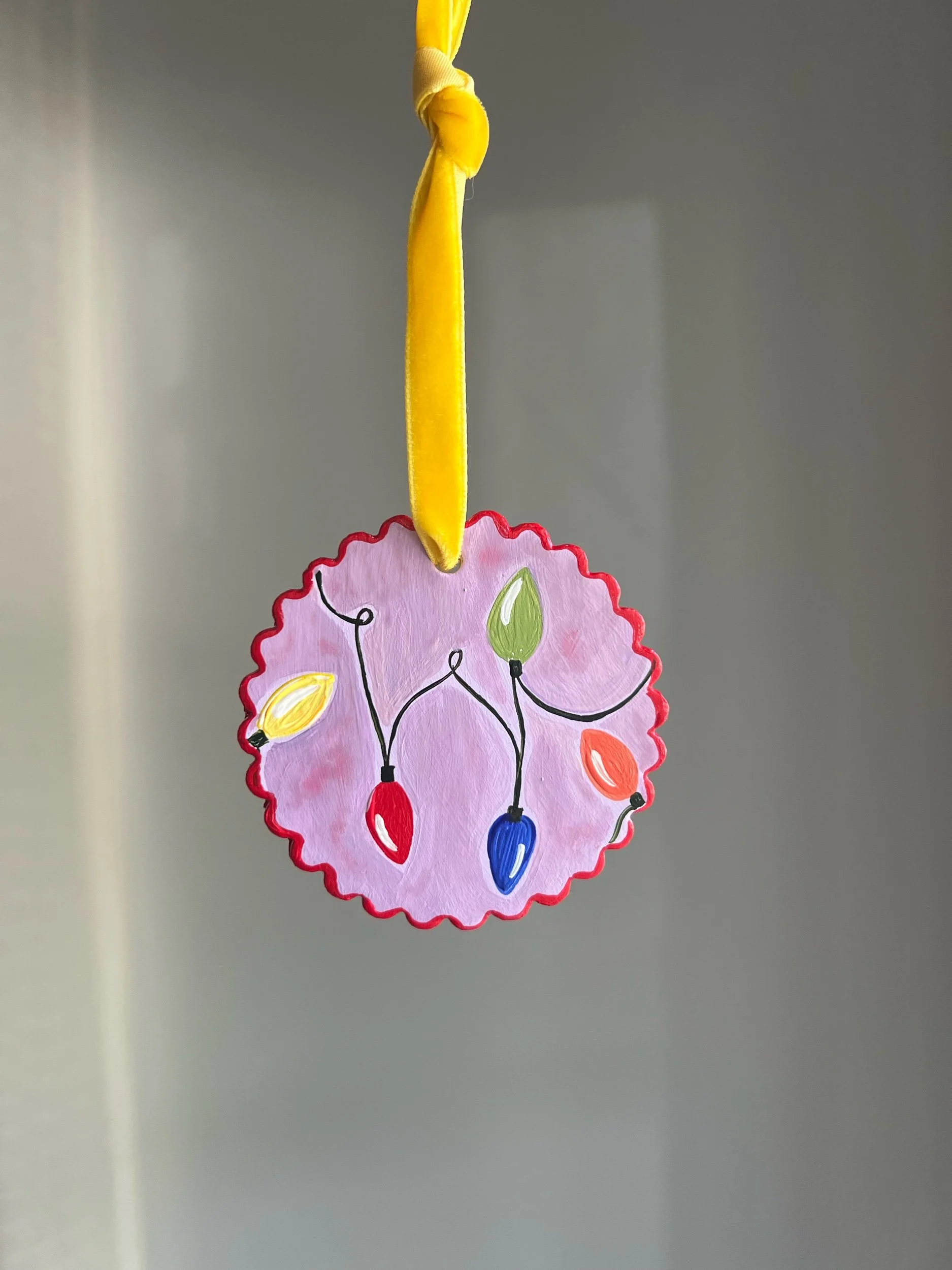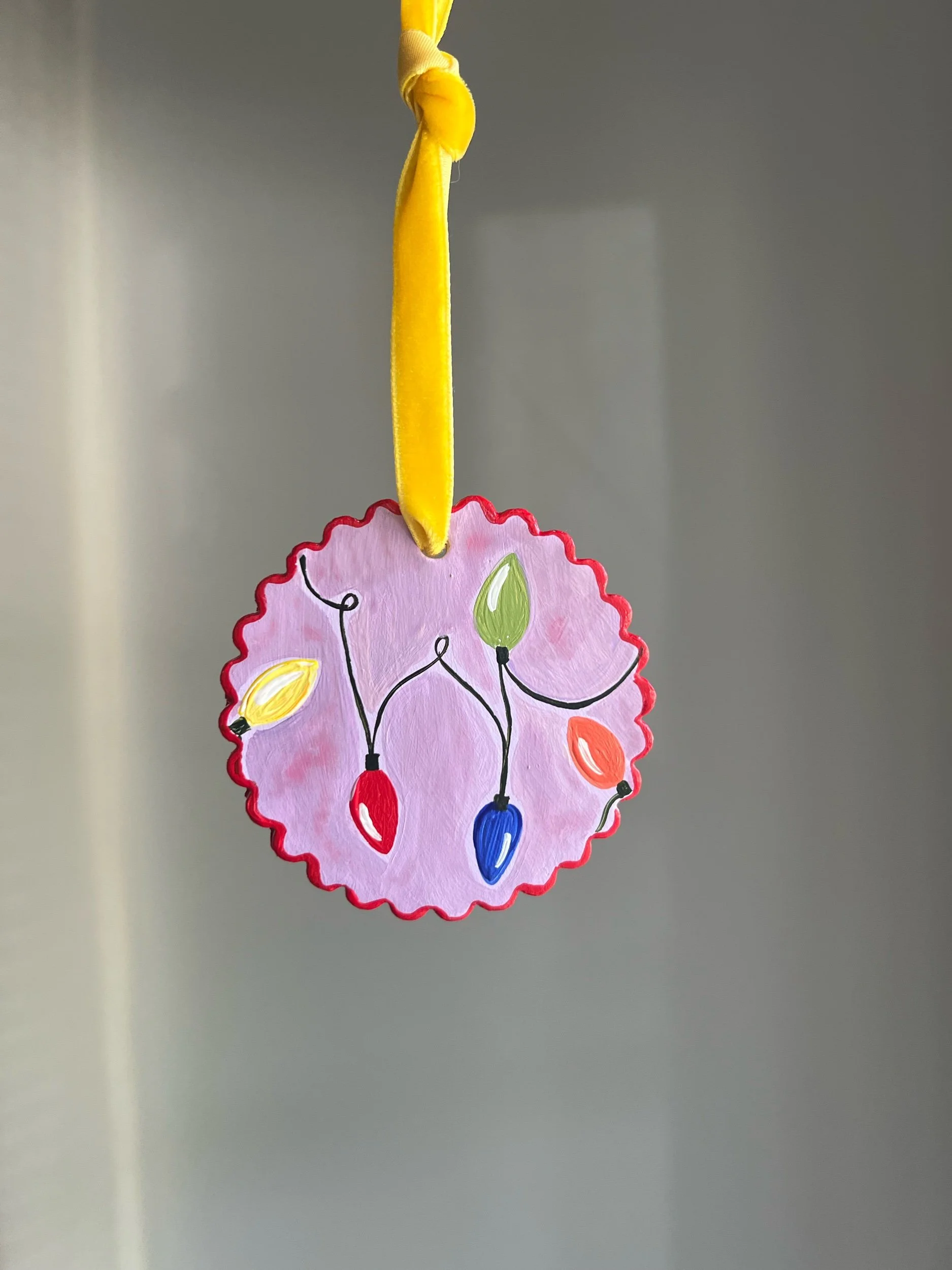Image 1 of 3 Image 2 of 3 Image 3 of 3 Nostalgic Lights Ornament $42.00 sold out Hand made bisque ornamentHand paintedVelvet ribbon Sold Out Added! Hand made bisque ornamentHand paintedVelvet ribbon
